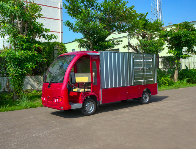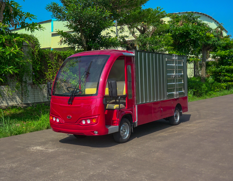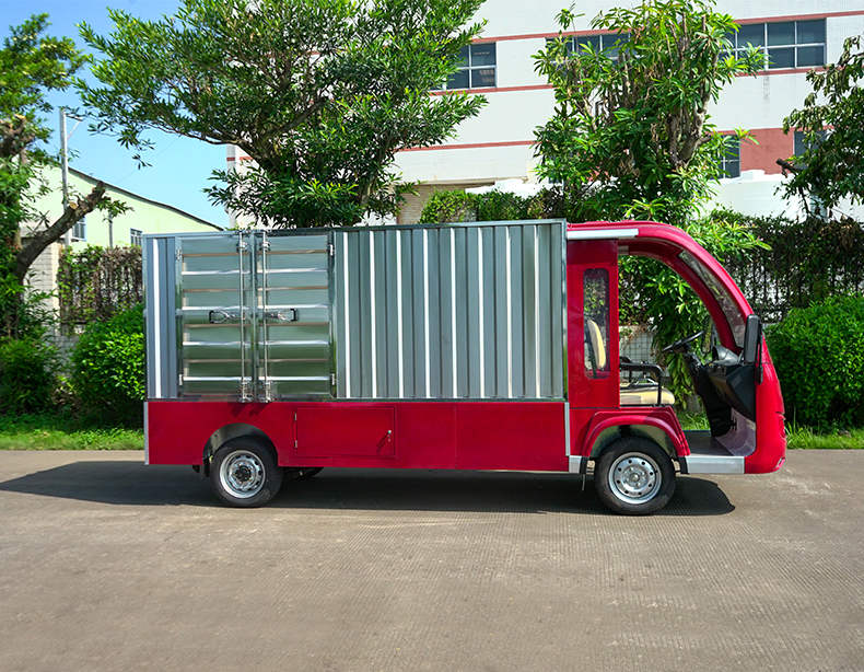 T14B-S深紅色廂式封閉貨車四輪電瓶觀光車廠內轉運車定制平板拉貨車